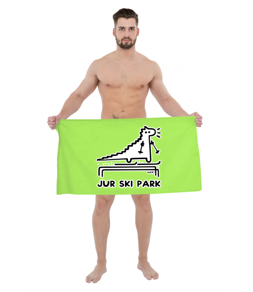 The original towel imprinted with UAX! Cycling for man with design 1277 JUR SKI PARK in color FLUO GREEN