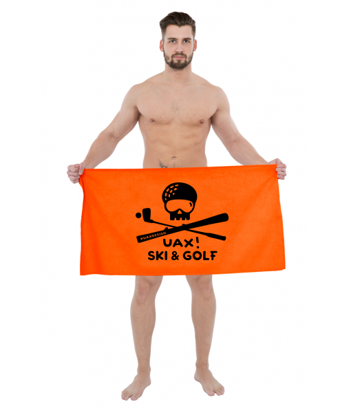 The original towel imprinted with UAX! Cycling for man with design 1339 SKI AND GOLF in color SIGNAL ORANGE