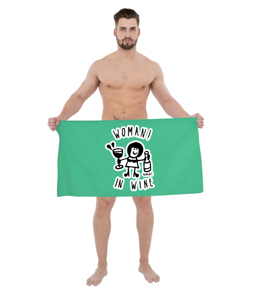 The original towel imprinted with UAX! Cycling for man with design 1347 WOMAN IN WINE 2 in color EUCALYPTO GREEN