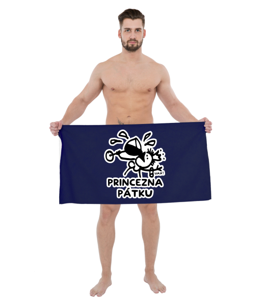 The original towel imprinted with UAX! Cycling for man with design 1349 PRINCEZNA PÁTKU in color MIDNIGHT BLUE