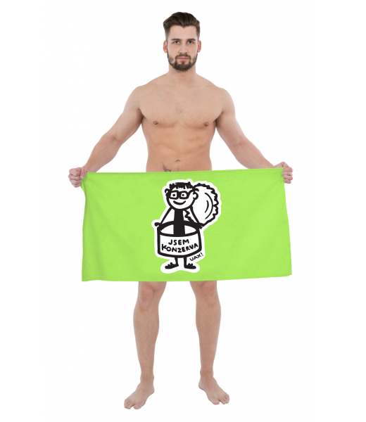 We make sustainable UAX clothing! - hand sewn in the Czech Republic uaxMen uaxCyclingTowelsPRINTED TOWELSdesign 1352 - JSEM KONZERVA MENFLUO GREEN