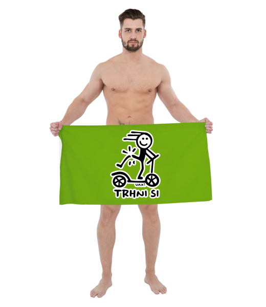 The original towel imprinted with UAX! Cycling for man with design 1357 TRHNI SI NOHOU in color PARROT GREEN