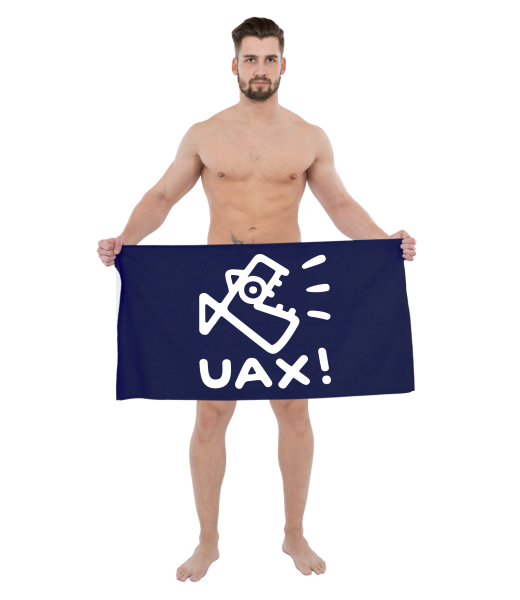 The original towel imprinted with UAX! For printing towels and toweling use dye-sublimation technology guarantees excellent color saturation and an extensive range of colors. Towel UAX! We print on one side (the other side remains white and is used to blow-dry). One side of the towel is 100% cotton for the drying of a second side of the towel is 100% polyester which does print design! Wash at 60°C