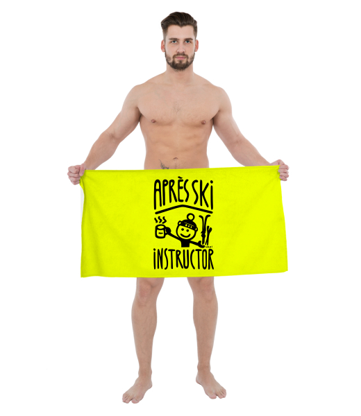 The original towel imprinted with UAX! Cycling for man with design 1367 APRÉS SKI INSTRUCTOR in color GREEN LIMET