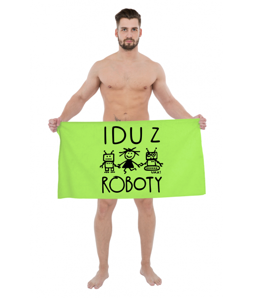 The original towel imprinted with UAX! Cycling for man with design 1370 IDU Z ROBOTY in color FLUO GREEN