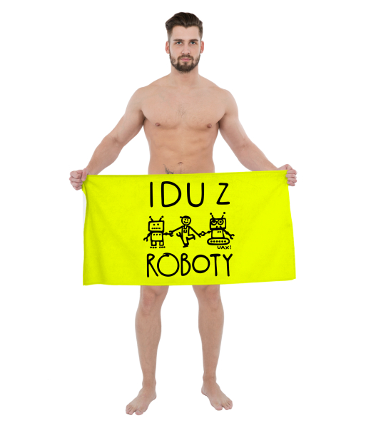 The original towel imprinted with UAX! Cycling for man with design 1377 IDU Z ROBOTY 2 in color GREEN LIMET