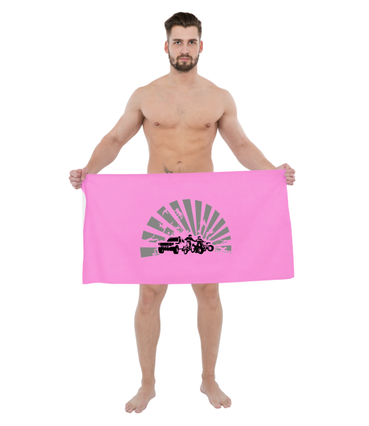 The original towel imprinted with UAX! Cycling for man with design 244 OFFROAD in color INDIAN LILA
