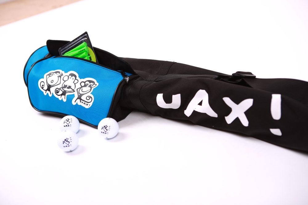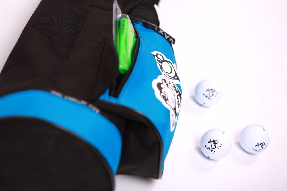 Uax GOLF CARRY BAG with printing. GOLF CARRY BAG made ​​of waterproof material kortexin. On the front of the bag, you can choose one of the original printings with an optimistic view of the world. Braced for more comfort and balance. practical pocket for balls, etc.