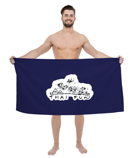 The original towel imprinted with UAX! Golf collection for man with design 1041 THAI FUN in color MIDNIGHT BLUE