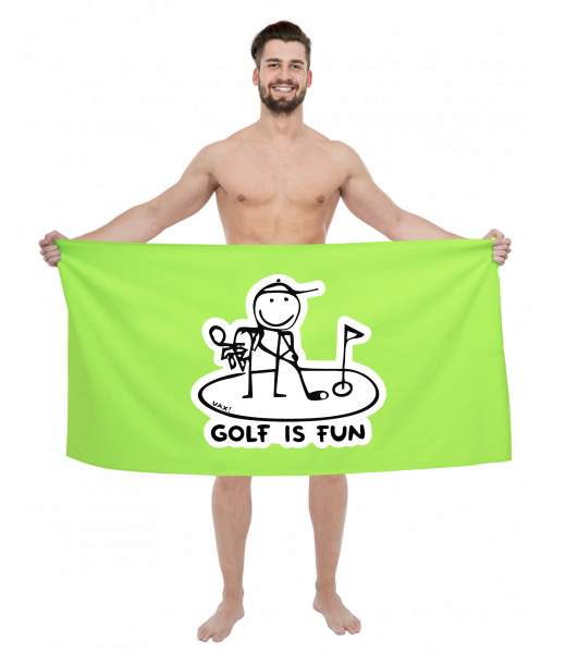 We make sustainable UAX clothing! - hand sewn in the Czech Republic uaxMen uaxGolf collectionTowelsPRINTED BIG TOWELSdesign 1057 - GOLF IS FUNFLUO GREEN
