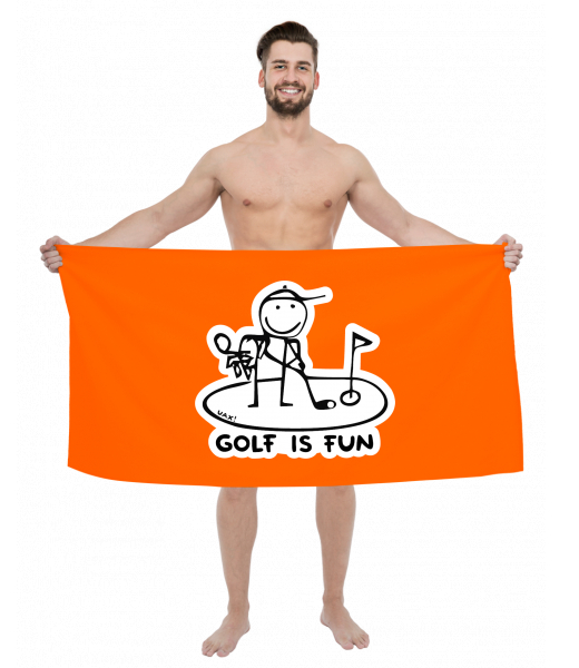 We make sustainable UAX clothing! - hand sewn in the Czech Republic uaxMen uaxGolf collectionTowelsPRINTED BIG TOWELSdesign 1057 - GOLF IS FUNSIGNAL ORANGE