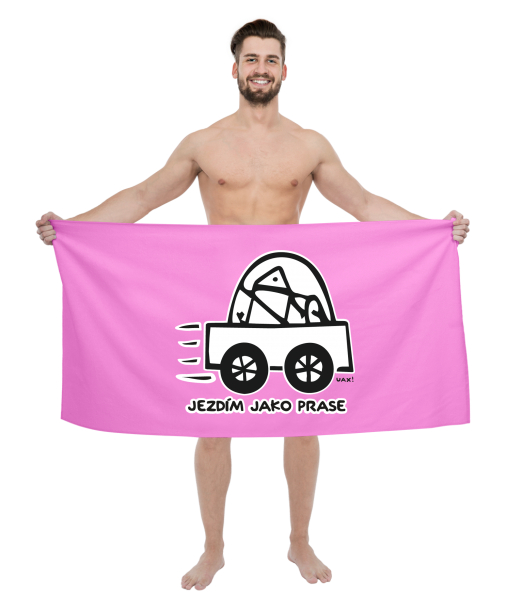 We make sustainable UAX clothing! - hand sewn in the Czech Republic uaxMen uaxGolf collectionTowelsPRINTED BIG TOWELSdesign 1072 - JEZDÍM JAKO PRASEINDIAN LILA