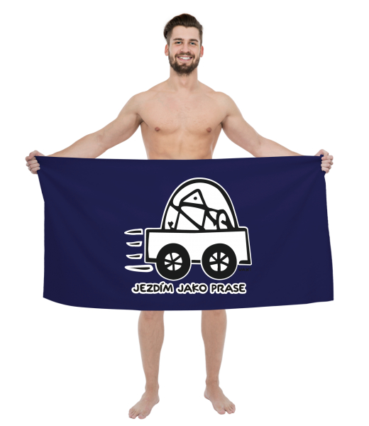 We make sustainable UAX clothing! - hand sewn in the Czech Republic uaxMen uaxGolf collectionTowelsPRINTED BIG TOWELSdesign 1072 - JEZDÍM JAKO PRASEMIDNIGHT BLUE