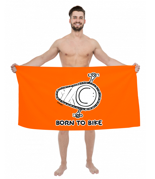 We make sustainable UAX clothing! - hand sewn in the Czech Republic uaxMen uaxGolf collectionTowelsPRINTED BIG TOWELSdesign 1074 - BORN TO BIKESIGNAL ORANGE