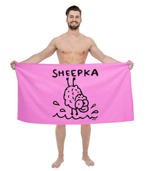 We make sustainable UAX clothing! - hand sewn in the Czech Republic uaxMen uaxGolf collectionTowelsPRINTED BIG TOWELSdesign 1077 - SHEEPKAINDIAN LILA