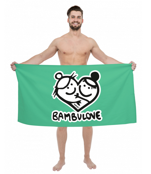 The original towel imprinted with UAX! Golf collection for man with design 1079 BAMBULOVE in color EUCALYPTO GREEN