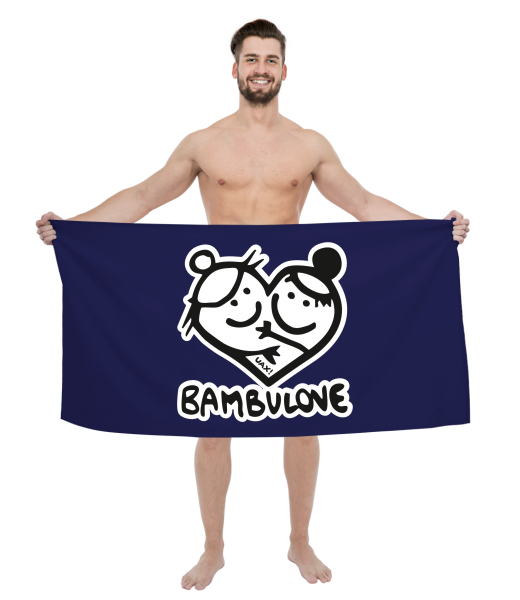 The original towel imprinted with UAX! Golf collection for man with design 1079 BAMBULOVE in color MIDNIGHT BLUE