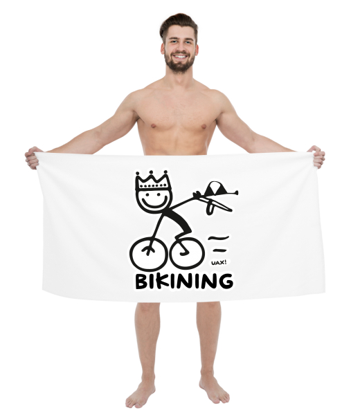 The original towel imprinted with UAX! Golf collection for man with design 1080 BIKINING in color WHITE