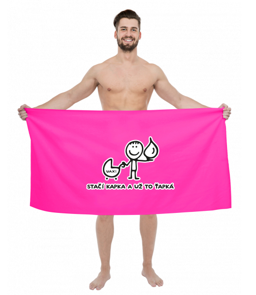 We make sustainable UAX clothing! - hand sewn in the Czech Republic uaxMen uaxGolf collectionTowelsPRINTED BIG TOWELSdesign 1081 - STAČÍ KAPKA A UŽ TO ŤAPKÁFLUO PINK