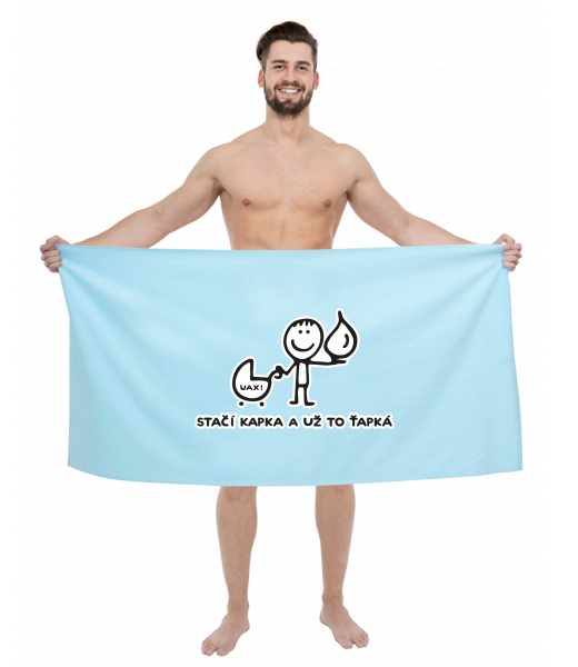 We make sustainable UAX clothing! - hand sewn in the Czech Republic uaxMen uaxGolf collectionTowelsPRINTED BIG TOWELSdesign 1081 - STAČÍ KAPKA A UŽ TO ŤAPKÁPASTEL BLUE