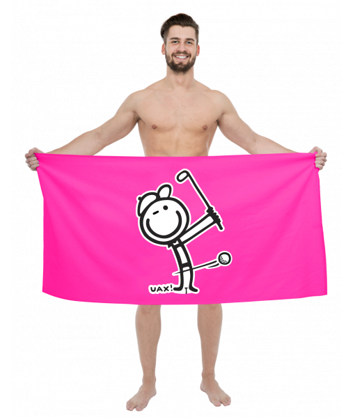 The original towel imprinted with UAX! Golf collection for man with design 1109 GOLF BOY in color FLUO PINK
