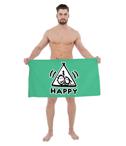 The original towel imprinted with UAX! Golf collection for man with design 1113 HAPPY in color EUCALYPTO GREEN