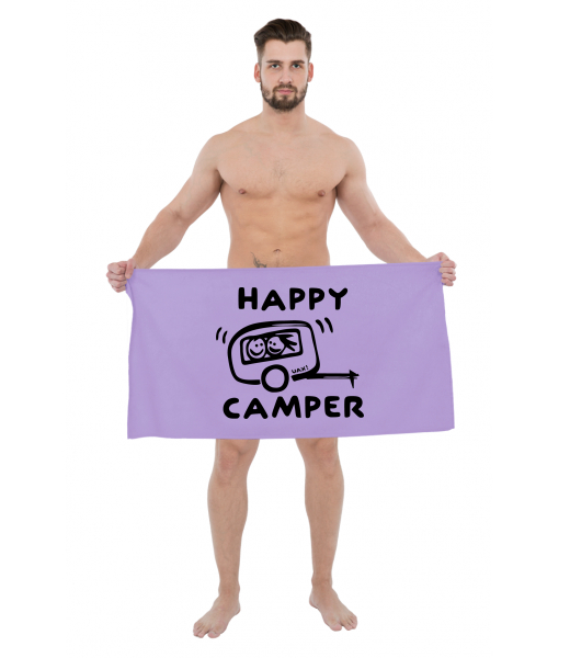 The original towel imprinted with UAX! Golf collection for man with design 1116 HAPPY CAMPER in color LAVENDER