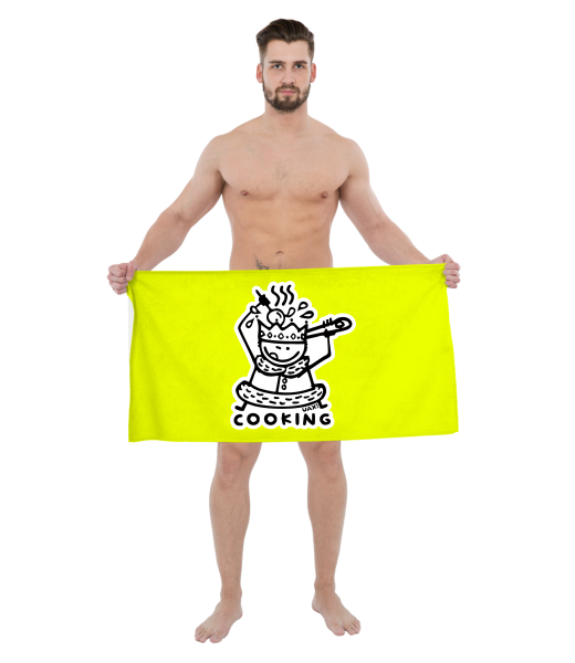The original towel imprinted with UAX! Golf collection for man with design 1117 COOKING in color GREEN LIMET