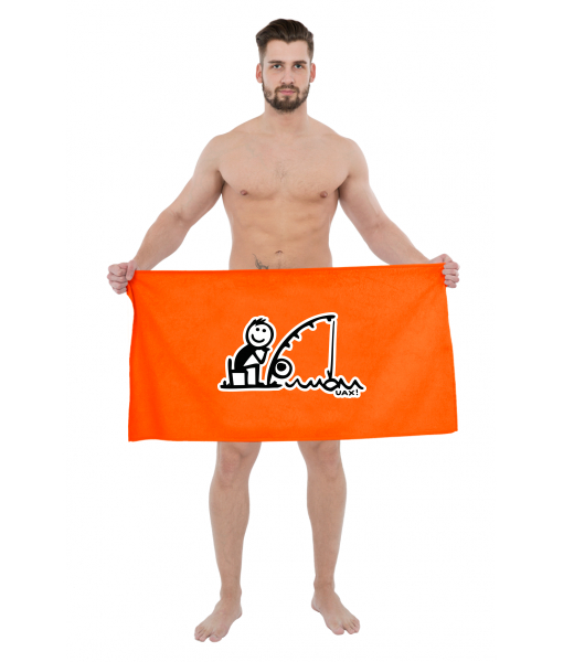The original towel imprinted with UAX! Golf collection for man with design 1252 RYBÁŘ in color SIGNAL ORANGE