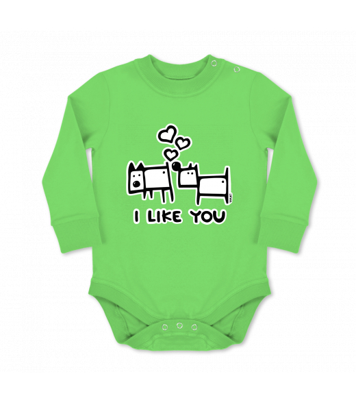 UAX baby body Ski collection for man with design 1066 I LIKE YOU in color APPLE