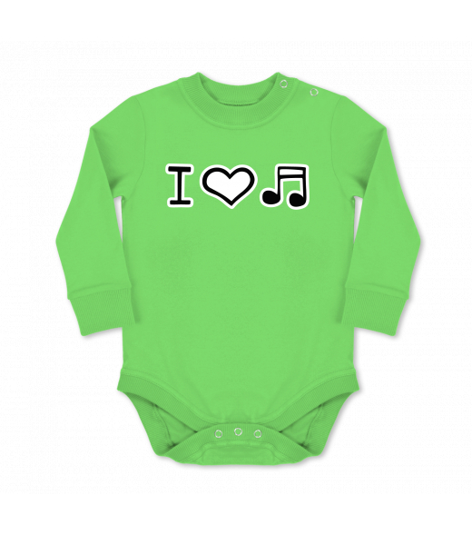UAX baby body Ski collection for man with design 1067 I LOVE MUSIC in color APPLE
