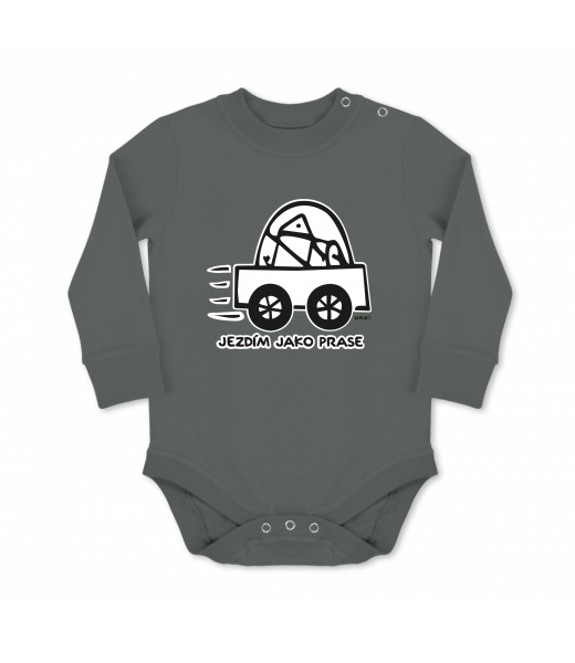 We make sustainable UAX clothing! - hand sewn in the Czech Republic uaxMen uaxSki collectionBaby bodyBABY BODY LONGdesign 1072 - JEZDÍM JAKO PRASEDARK GRAY