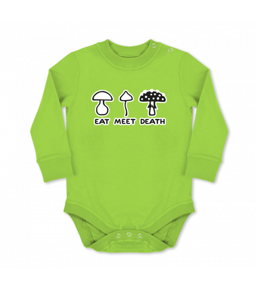 We make sustainable UAX clothing! - hand sewn in the Czech Republic uaxMen uaxSki collectionBaby bodyBABY BODY LONGdesign 1177 - EAT MEET DEATHPARROT GREEN