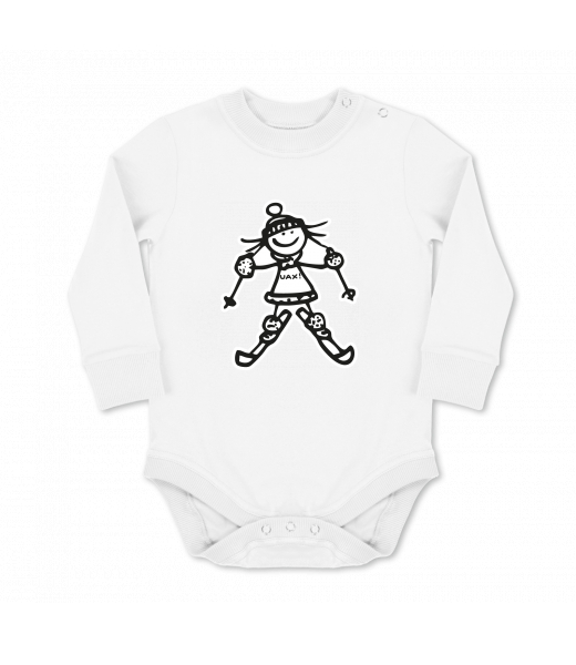 UAX baby body Ski collection for man with design 1179 SKIER GIRL in color WHITE