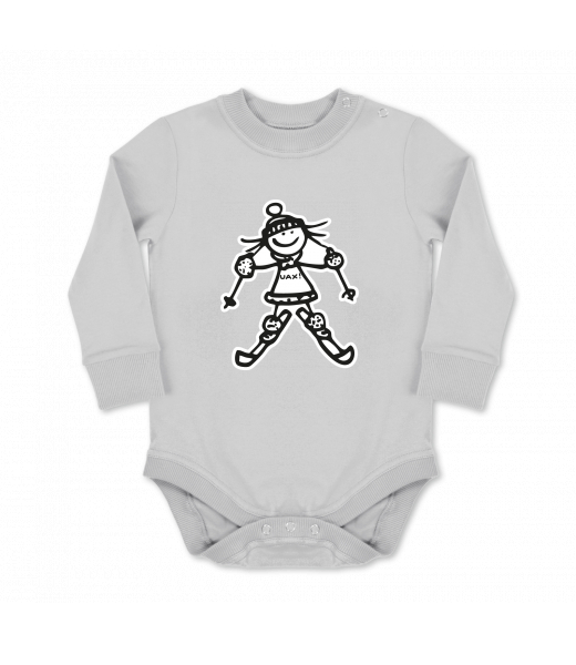 UAX baby body Ski collection for man with design 1179 SKIER GIRL in color CEMENT