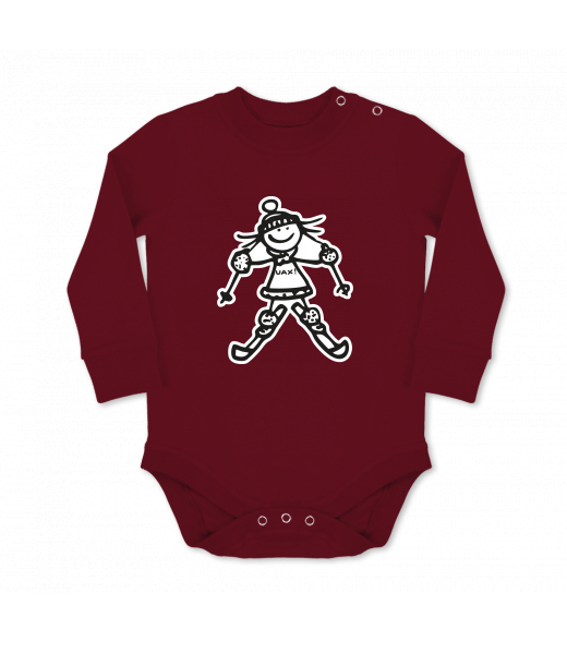 UAX baby body Ski collection for man with design 1179 SKIER GIRL in color DARK RED