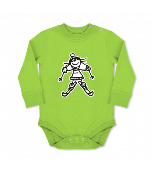 UAX baby body Ski collection for man with design 1179 SKIER GIRL in color PARROT GREEN
