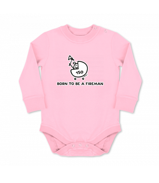 UAX baby body Ski collection for man with design 1184 BORN TO BE A FIREMAN in color BABY PINK