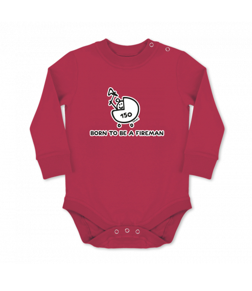 UAX baby body Ski collection for man with design 1184 BORN TO BE A FIREMAN in color CHILLY PEPPER RED