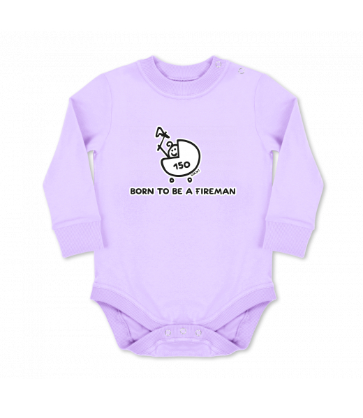 UAX baby body Ski collection for man with design 1184 BORN TO BE A FIREMAN in color LAVENDER