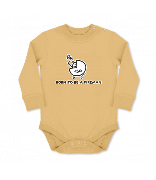 UAX baby body Ski collection for man with design 1184 BORN TO BE A FIREMAN in color MUSTARD