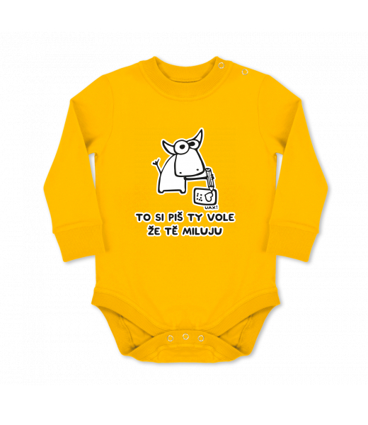 We make sustainable UAX clothing! - hand sewn in the Czech Republic uaxMen uaxSki collectionBaby bodyBABY BODY LONGdesign 1192 - TO SI PIŠ TY VOLE ŽE TĚ MILUJUGOLDEN CREAM