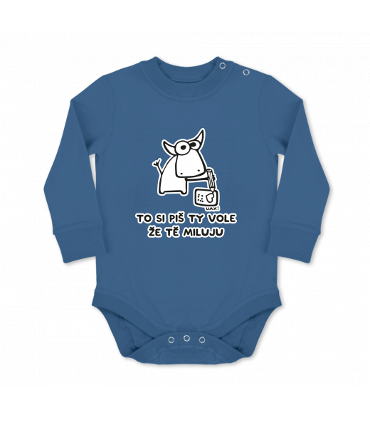 We make sustainable UAX clothing! - hand sewn in the Czech Republic uaxMen uaxSki collectionBaby bodyBABY BODY LONGdesign 1192 - TO SI PIŠ TY VOLE ŽE TĚ MILUJUMOONLIGHT BLUE
