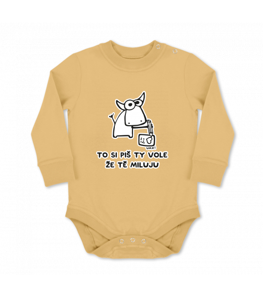 UAX baby body Ski collection for man with design 1192 TO SI PIŠ TY VOLE ŽE TĚ MILUJU in color MUSTARD