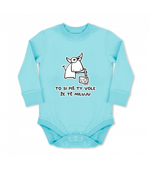We make sustainable UAX clothing! - hand sewn in the Czech Republic uaxMen uaxSki collectionBaby bodyBABY BODY LONGdesign 1192 - TO SI PIŠ TY VOLE ŽE TĚ MILUJUPASTEL BLUE