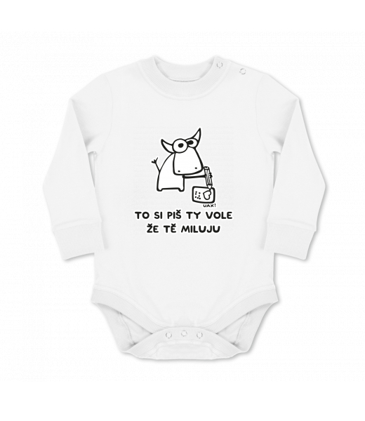 We make sustainable UAX clothing! - hand sewn in the Czech Republic uaxMen uaxSki collectionBaby bodyBABY BODY LONGdesign 1192 - TO SI PIŠ TY VOLE ŽE TĚ MILUJUWHITE
