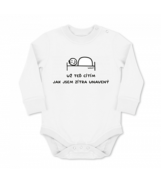 UAX baby body Ski collection for man with design 1200 UŽ TEĎ CÍTÍM JAK JSEM ZÍTRA UNAVENÝ in color WHITE