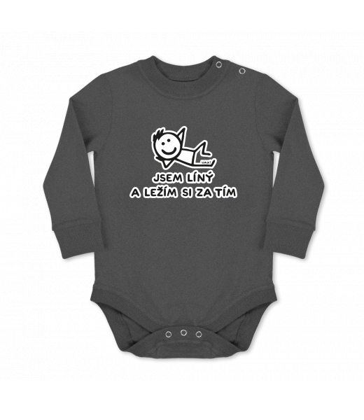 UAX baby body Ski collection for man with design 1217 JSEM LÍNÝ A LEŽÍM SI ZA TÍM in color GRAFIT