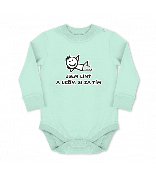 UAX baby body Ski collection for man with design 1217 JSEM LÍNÝ A LEŽÍM SI ZA TÍM in color MINT