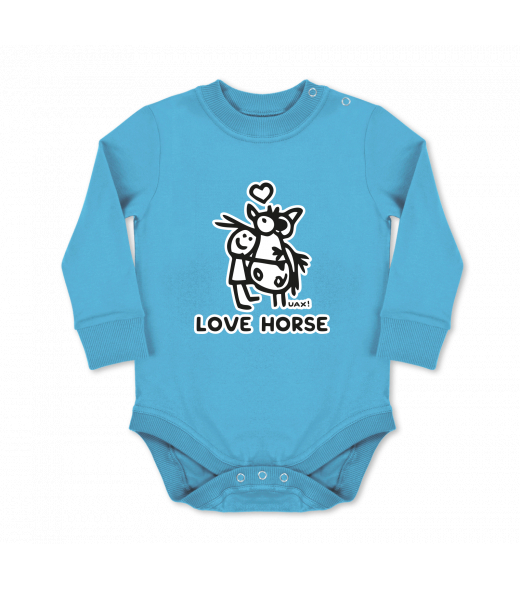 UAX baby body Ski collection for man with design 1219 LOVE HORSE in color BLUE ATOLL